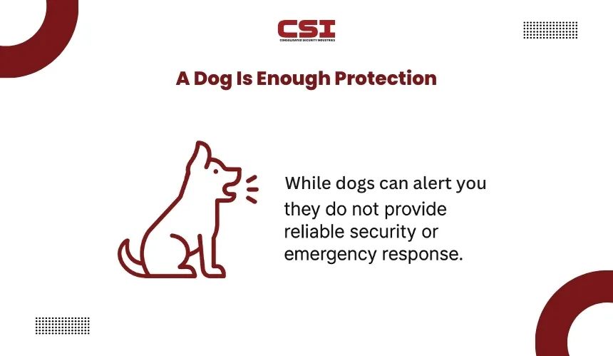 Many homeowners believe that having a dog eliminates the need for an alarm system. While pets can deter some intruders with barking, they cannot provide reliable security or emergency response. Relying solely on a pet for home protection creates a false sense of safety.