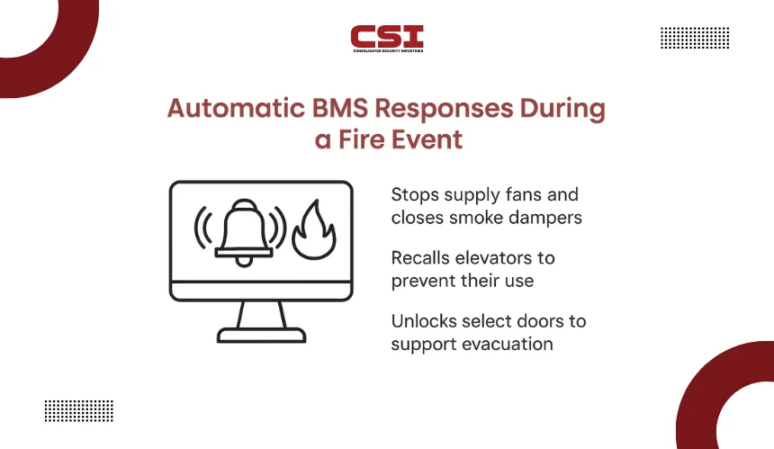 It helps the building react faster by automating ventilation changes, access adjustments, and equipment shutdowns based on the fire alarm signal. These automated actions reduce manual intervention and help teams maintain safer conditions during fast-changing situations.